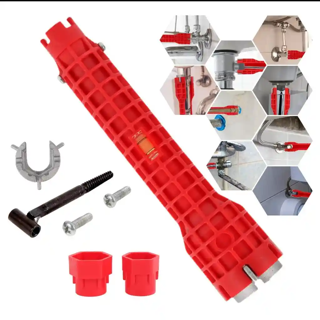 Características: 1. El diseño ultralargado permite girar las tuercas de montaje de difícil acceso del Grifo, el rociador y el Grifo esférico. Ambos lados de la muesca del plástico se utilizan para acoplarse a tuercas de grifos de lavado de diferentes tamaños. 2. La llave para grifos tiene una estructura de plástico liviana y de alta resistencia e inserciones de aluminio duraderas. Simplemente gírela cuando la apliques un tapón metálico se puede girar rápida y fácilmente para reemplazar la tuerca del cable de alimentación conectado o la tuerca instalada en el grifo. Al apretar la tuerca del filtro, el accesorio de la sexta del filtro fija el dispositivo de drenaje en su lugar punto la llave para el Grifo del fregadero es una adición importante a cualquier caja de herramientas punto ya que puedes fijar y quitar varias tuercas de plástico para cuetas y tuercas para tuberías de suministro punto apto para reparar grifos de baños, fregadero, tuberías de cocina, y otros lugares. Especificaciones: Material: aleación de aluminio y plástico ABS. El paquete incluye: 1 juego de llaves multifuncionales para fregaderos.