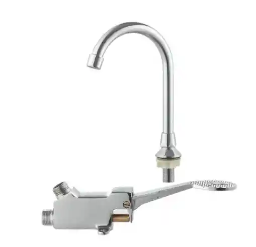 Cuerpo y pico fabricados en LATÓN Llave de pedal Sistema de cierre Automático Recomendado para uso de fregaderos de cocina, lavamanos, lavanderías, etc. Superficie libre de defectos o ralladuras. Producto probado para resistir oxidación o corrosión. CAPACIDAD Máxima presión de agua 140 PSI y una mínima presión de agua 20 PSI, para todo tipo de aplicaciones. COMPONENTES : 1. Un Pedal 2. Un ganso fijo- acople 3. Dos mangueras flexo metálicas una de 120 cm y una de 60 cm. 4. Dos chazos de seguridad RECOMENDACIONES : 1. Use moderadamente cinta de teflón para realizar la unión 2. Para la limpieza externa de la pieza se recomienda el uso de agua y jabón suave 3. Se sugiere purgar la conexión previo a su instalación para evitar taponamiento de los filtros. Para realizar dicho proceso se recomienda dejar correr el agua desde el punto de conexión durante 30 segundos o hasta eliminar impurezas notorias en el agua.