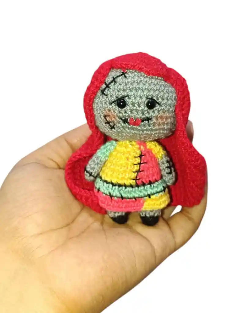 Sally (Personaje de jack skellington) tejido 100 % a mano con hilo crochet y relleno sintético.