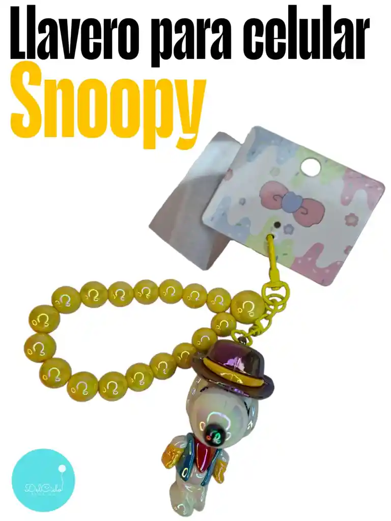 Llavero Snoopy para celular color amarillo.