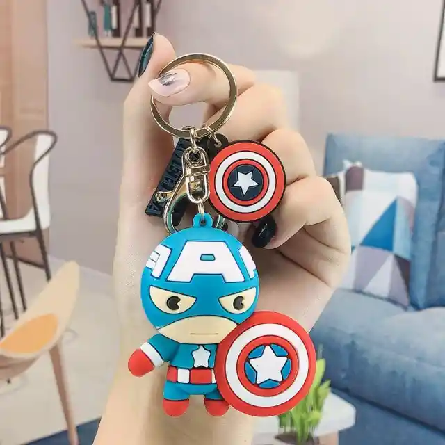 Espectacular llavero de personaje capitán américa de marvel cómics;con alto relieve, correa contramarcada, pines de escudo y nombre y gancho para colgar.