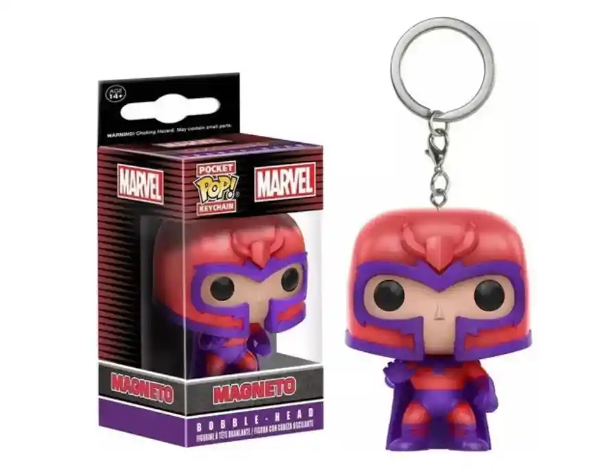 Llavero Funko Pop: Marvel Magneto Descripcion: - Nombre de la marca: Funko - Paquete original: Sí - Llavero De Coleccion - Tamaño: 5 CMS - Elaborado En: PVC - Género:Unisex - Rango de edad: 7 años - Escala: 1/60 - Tema: Películas y TV - Control remoto: No - Advertencia: No Comer - Grado de terminación: Productos terminados