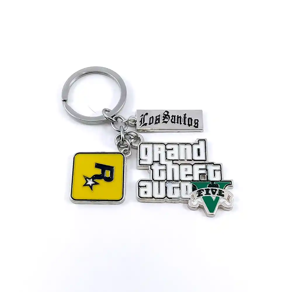 Llavero de Grand Theft Auto V (GTA V) para llevar un pedacito del mundo del juego contigo. Perfecto para los fanáticos de la saga GTA que desean mostrar su pasión por el juego en su día a día. Un accesorio urbano y lleno de estilo para tus llaves.