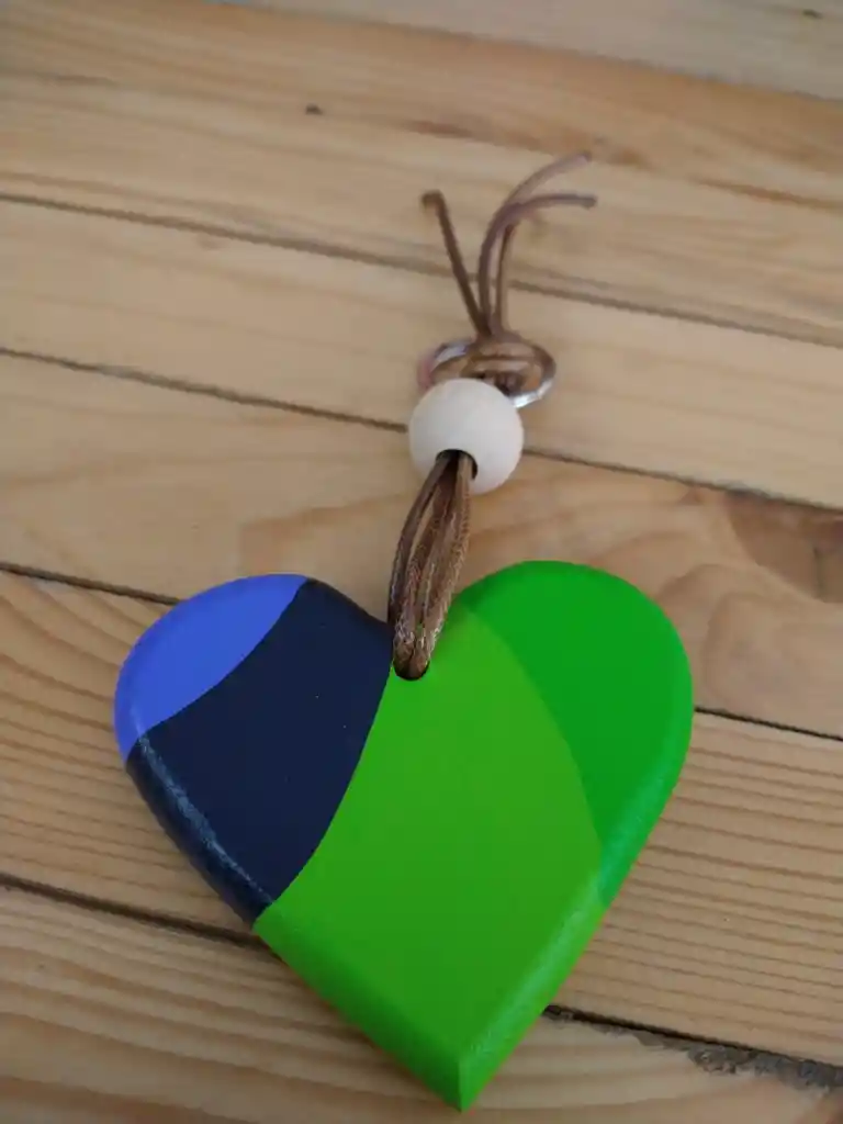 Llavero Mediano en madera con diseño. Dimensiones: Ancho 7,6cm, Largo 7,1cm, Alto 1cm.