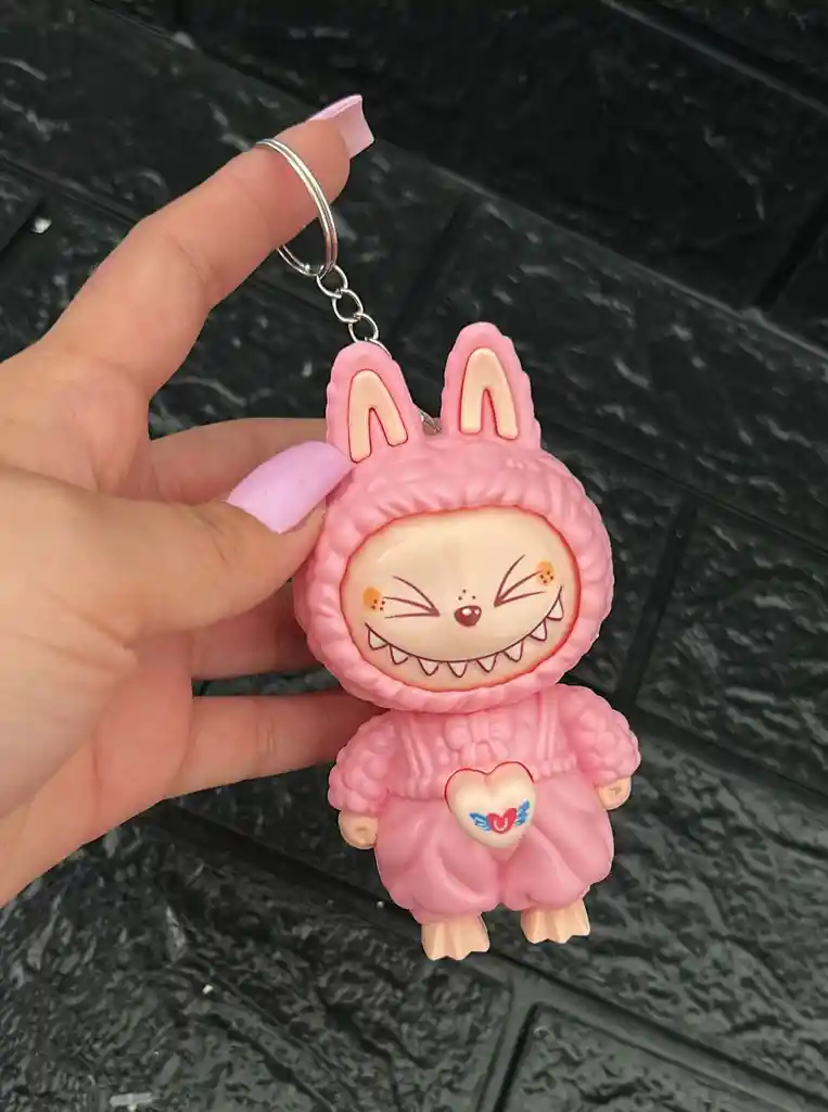 LLAVERO PASTA LABUBU ROSADO(( CON MOVIMIENTO CAMBIA DE CARA )) COD.3810