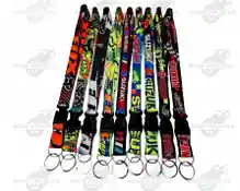 Material: Poliéster, nylon, o elastómero (tipo resorte). Ajuste: Largo tipo cinta para colgar del cuello. Detalles: Diseños variados. Proporciona un acceso rápido a las llaves de la moto o credenciales, evitando su pérdida.
