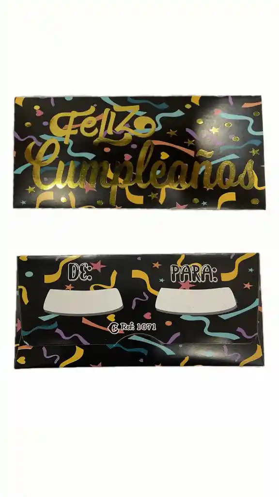1 Unidad. Disfruta de la elegancia en cada celebración con nuestra Lluvia de Sobre Feliz Cumpleaños. Presentado en un sobrio negro con letras doradas, este sobre es perfecto para hacer que cada regalo sea aún más especial.