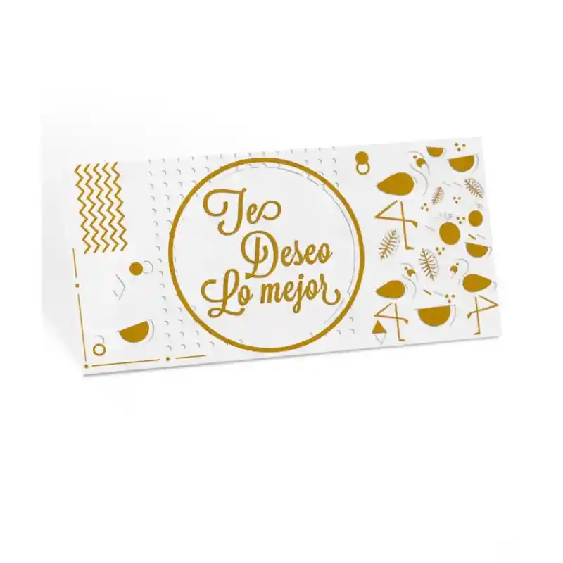 Sobre para regalo. Blanco, clásico, con letras oscuras o doradas. Felicidades, feliz día, con cariño.