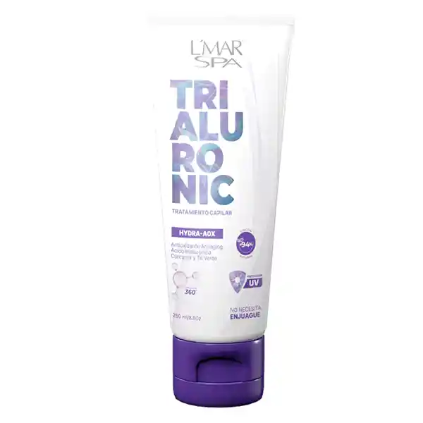 TRIALURONIC es una innovadora combinación de TRES TAMAÑOS DE ACIDO HIALURONICO que actúa en las distintas capas del cabello hidratandolo profundamente y fortaleciendolo. El poder antioxidante AOX de su técnologia BECA, aporta una exclusiva combinación de Bioesters vegetales enriquecido con Romero, curcuma y Té verde, que equilibran los lipidos naturales del cabello, facilitando una mejor absorción de los activos protrgiendo la fibra capilar del envejecimiento prematuro del cabello manteniendo la intensidad del color natural y protegiendolo del estrés oxidativo.