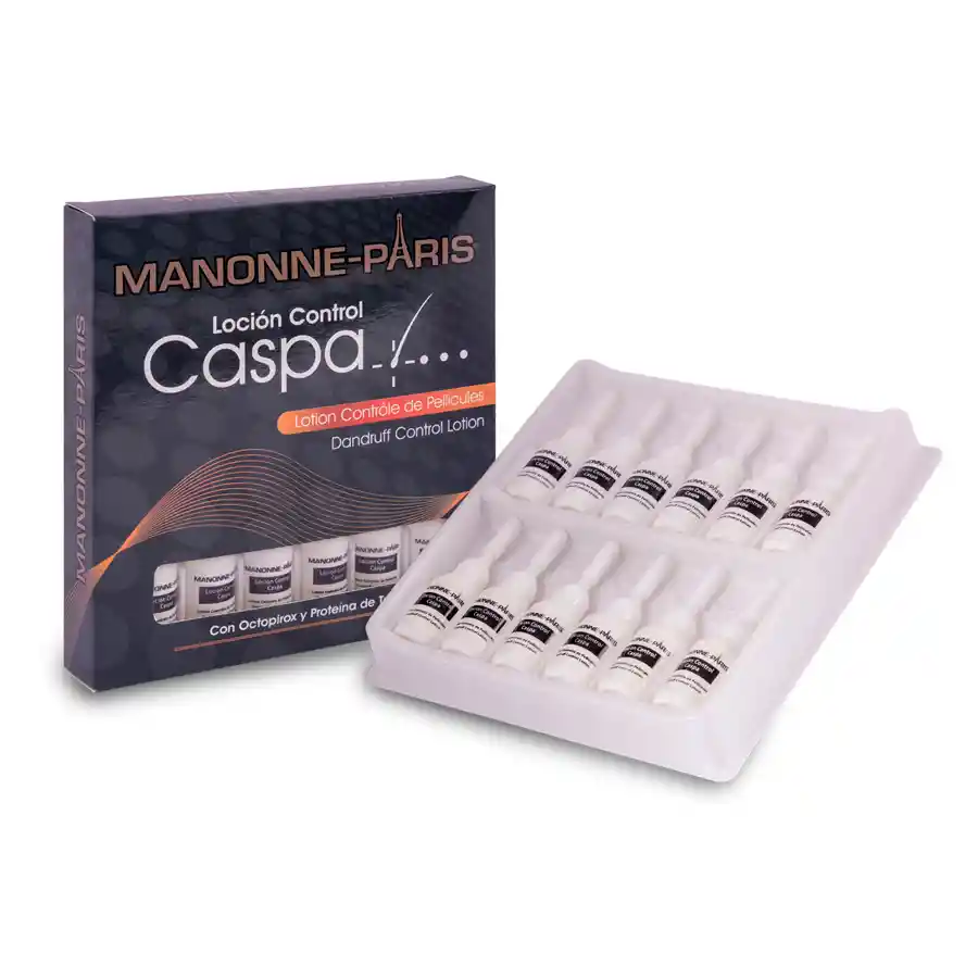 LOCIÓN CONTROL CASPA Loción desarrollada con nueva tecnología avanzada y de larga duración en el control de la caspa grasa y la caspa seca. Su exclusiva fórmula actúa específicamente en el cuero cabelludo reequilibrando la salud, devolviéndole el funcionamiento normal del recambio celular, eliminando la caspa y aliviando la picazón y la incomodidad. MODO DE EMPLEO: Aplicar sobre el cuero cabelludo limpio. Masajear suavemente con la yema de los dedos, para garantizar la penetración del producto. No enjuagar. Utilizar cuantas veces se desee. El uso continuo garantiza la eliminación permanente de la caspa. Presentación: 12 ampolletas unidosis por 10ml, 60ml