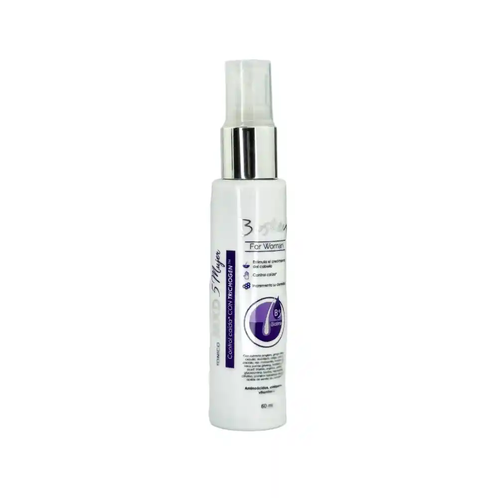 locion topica for woman bosley x 60ml, disminuye la caída del cabello ya que promueve la vitalidad capilar, su exclusiva formula tiene una concentración del 3% que penetra los folículos porosos y a través del tiempo se va desarrollando fortalecimiento de la fibra capilar, además acelera las etapas del vello común, haciendo que crezcan y logren su grosor mucho mas definido. Por lo que no solo es útil para las personas lampiñas o con poco vello en las cejas, si no también para las que deseen un cabello, cejas y pestañas mas abundantes, gruesas y pobladas. Esta enriquecido con biotina, ácido hialuronico, aceite de castor que por su alto contenido en omega 9 y ácidos grasos es ideal para promover el crecimiento del cabello con hebras fuertes.