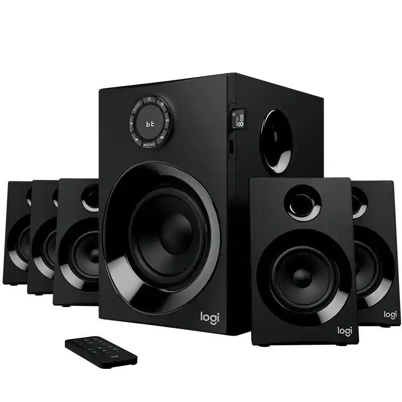 Con una potencia de pico de 160 vatios, este sistema de bocinas 5.1 llena tu espacio con audio de alta calidad que suena increíble. Disfruta del verdadero sonido envolvente desde cualquier fuente (TV, teléfono, computadora y juegos)La consola debe conectarse al TV mediante RCA y mucho más. Incluso puedes reproducir contenido de audio directamente de tarjetas SD, unidades USB o radio FM. El transductor de subwoofer de 133,35 mm produce graves que puedes sentir, mientras que el remoto incluido y los cables posteriores extralargos facilitan la configuración y el uso. Rodéate de audio de tus películas, música y juegos favoritos con un sistema de bocinas 5.1 que incluye canales izquierdo, derecho y central, dos bocinas satélite posteriores y un subwoofer. Disfruta de sonido potente desde cualquier dirección. Z607 convierte tu música estéreo en sonido envolvente para que disfrutes al máximo de tu audio. Disfruta de audio de alta calidad con una compresión mínima y con la facilidad de uso proporcionada por Bluetooth 4.2. Gracias a la compatibilidad con Bluetooth 4.2, obtendrás una gran calidad de sonido inalámbrico y una conexión confiable que transfiere datos 2,5 veces más rápido que Bluetooth 4.1. Streaming inalámbrico desde dispositivos conectados hasta a 15 metros de distancia (con línea de visión directa). Especificaciones: Total de vatios reales (RMS): 80 W pico / 80 W RMS Subwoofer: 25 W RMS Altavoces satélite: 55 W RMS (total) Bluetooth 4.2: 1 Cables RCA a RCA: 3 Cable de 3,5 mm a RCA: 1 Lector de tarjetas SD: 1 Compatibilidad con formatos de archivo de audio: MP3, WMA, WAV, APE, FLAC Puerto USB: 1 Compatibilidad con formatos de archivo de audio: MP3, WMA, WAV, APE, FLAC Radio FM: Sí Remoto: 1 Garantía: 12 meses