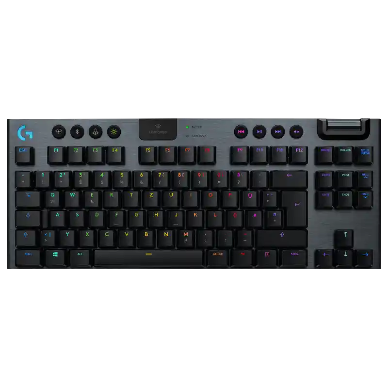 Tecnología inalámbrica LIGHTSPEED – Para un rendimiento profesional con flexibilidad y sin ataduras de cables. G915 TKL crea una estética despejada para tus puestos de combate. Hasta 40 horas de uso con una sola carga completa. RGB LIGHTSYNC – La iluminación RGB del teclado se sincroniza con cualquier contenido. Personaliza cada tecla o crea animaciones personalizadas a partir de ~16,8 millones de colores con el software Logitech G HUB. Interruptores mecánicos de perfil bajo – La velocidad, la precisión y el rendimiento de un interruptor mecánico con la mitad de altura. Existen tres opciones: GL Táctil, GL Lineal o GL con clic perceptible. El interruptor GL con clic perceptible ofrece una clara sensación sonora y táctil. Diseño TKL compacto – Un diseño sin teclado numérico deja más espacio para el movimiento del ratón. Espacio para guardar el receptor USB en la parte posterior del teclado, para facilitar el transporte. Construcción premium en AL-MG – Bellamente diseñado, el G915 utiliza una aleación de aluminio de grado aeronáutico para ofrecer un diseño increíblemente fino, pero rígido y duradero.