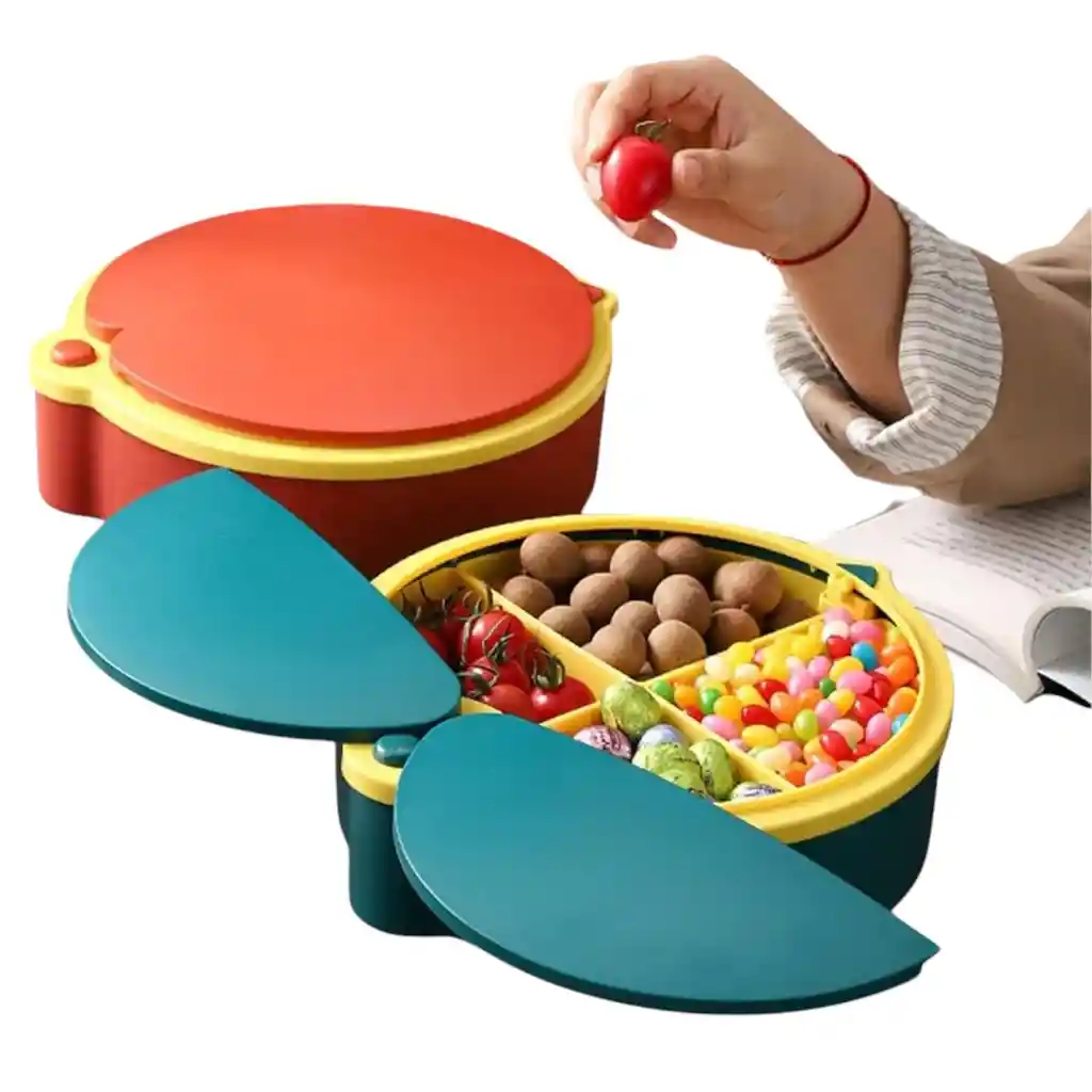 Mantén tus snacks, frutas, frutos secos y dulces organizados con este práctico contenedor giratorio de dos niveles. Su diseño moderno con tapas en forma de pétalos y divisiones internas permite almacenar diferentes alimentos de forma ordenada, fresca y a la mano. Ideal para reuniones, picnics, oficinas o el hogar, es perfecto para sorprender a tus invitados y aprovechar mejor el espacio. DETALLES Material: resina - plastico Tamaño: 24cm X 8cm Tamaño compacto y ligero Fácil de transportar Diseño ecológico y seguro para alimentos Diseño giratorio con tapas tipo pétalo que facilitan el acceso. Material resistente y fácil de limpiar, seguro para alimentos. Ideal para frutas, frutos secos, dulces, snacks y más. Práctico y compacto, perfecto para hogar, oficina o viajes. Colores modernos y llamativos que decoran tu mesa. *IMPORTANTE* El color del producto puede variar, según la disponibilidad en el momento* **INFORMACION IMPORTANTE **El color de la foto es referencial para que puedas ver los atributos del producto y al mismo tiempo es la opción 1 nuestra de despacho. Pero dejamos la aclaración para que lo tengas presente por si te llegara en otro color. ** NOTA : La foto de este producto ha sido ambientada, por lo cual no incluye ningún adorno, ni accesorios, ni piezas adicionales ni ningún otro elemento que lo acompañan. Observaciones De Garantía: 1 Mes**** La garantía de este producto es exclusivamente por defectos de fábrica, no por daños ocasionados por mal uso o por desconocimiento de uso del cliente. La garantía se tramitará bajo las políticas, términos y condiciones establecidos por la empresa.