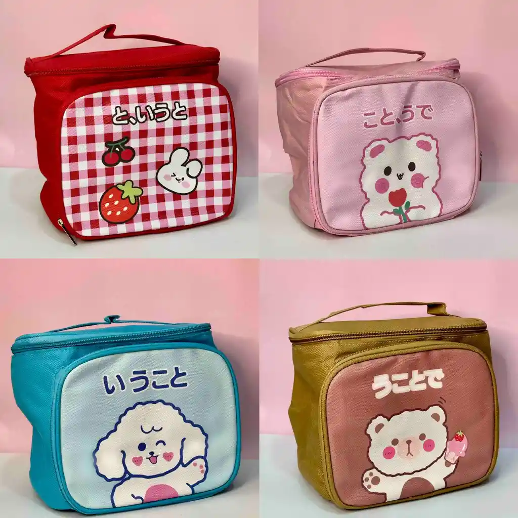 Lindas loncheras en tela de 19 x18 cm. Cuenta con un bolsillo interno y uno externo. Disponibles: Fucsia, rosado, café y azul.