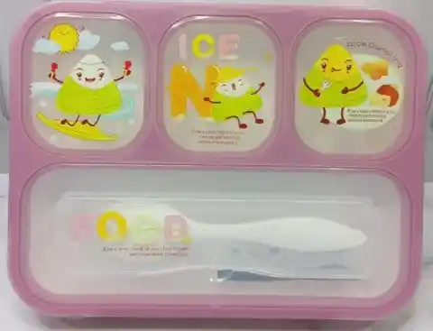 Lonchera Plastica Para niños Porta Comidas Rectangular Con Cubiertos