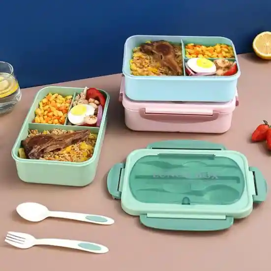 Presentamos nuestra lonchera, diseñada pensando en la comodidad y durabilidad. La tira de silicona garantiza y evita fugas de alimentos y haciéndola perfecta para llevar el almuerzo. Los cuatro interruptores rápidos son fáciles de usar y permanecen conectados de forma segura, lo que garantiza un producto duradero. Cada lonchera viene completa con cuchara, tenedor, cortador y palillos, lo que la hace adecuada tanto para niños y adultos Fabricada con material PP apto para uso alimentario, esta lonchera es reutilizable, fácil de limpiar y diseñada para durar. es apta para el microondas