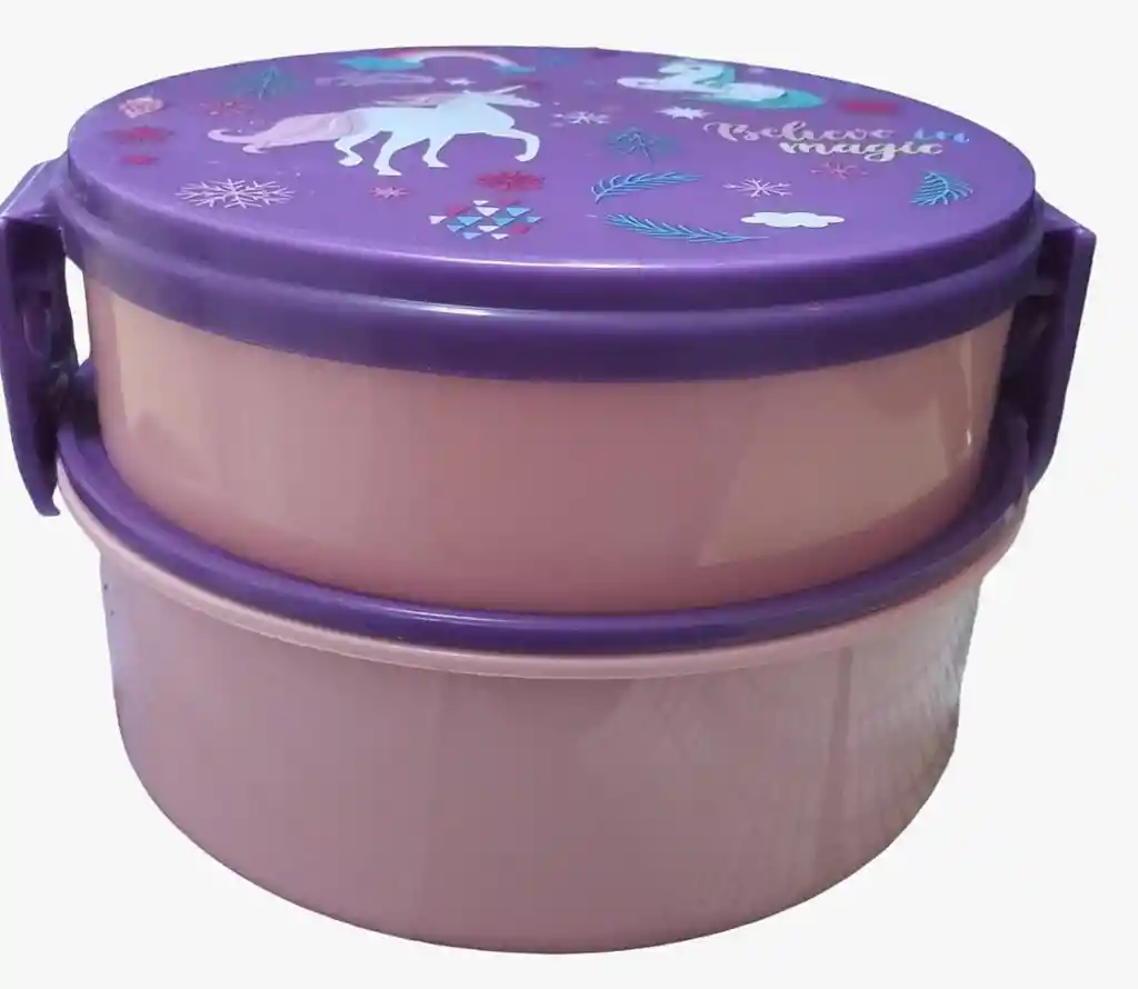 Lonchera Recipiente 2 Pisos Circular Plato Escolar Lunch Niños Contenedor de Alimentos Comida Recreo niñas