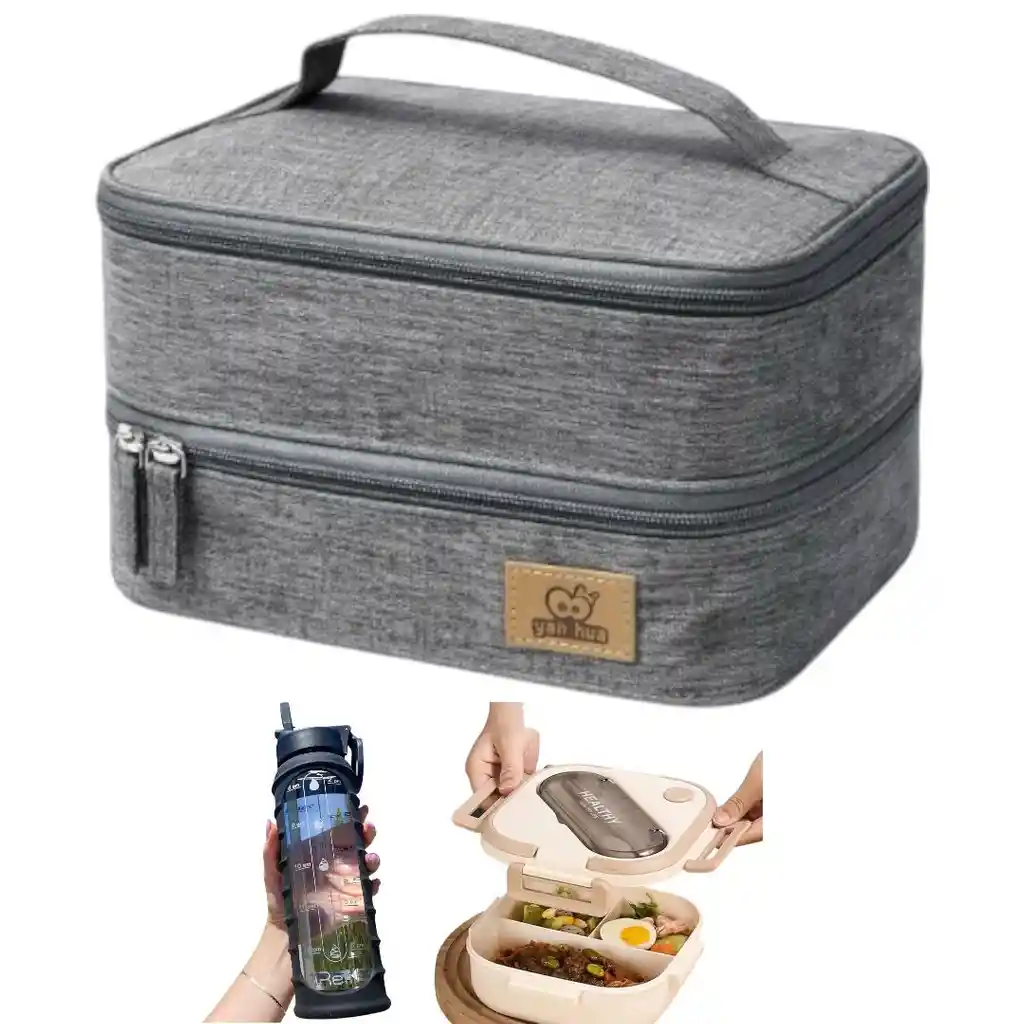 LONCHERA DOBLE Mantén tus alimentos frescos y a la temperatura ideal con la Lonchera Térmica,Este modelo innovador está permitiéndote simplemente organizar tu comida y snacks de manera eficiente. La tela Oxford de alta calidad en el exterior e interior no solo asegura durabilidad, sino que también contribuye a un aislamiento térmico superior, manteniendo tus comidas a la temperatura deseada por más tiempo.