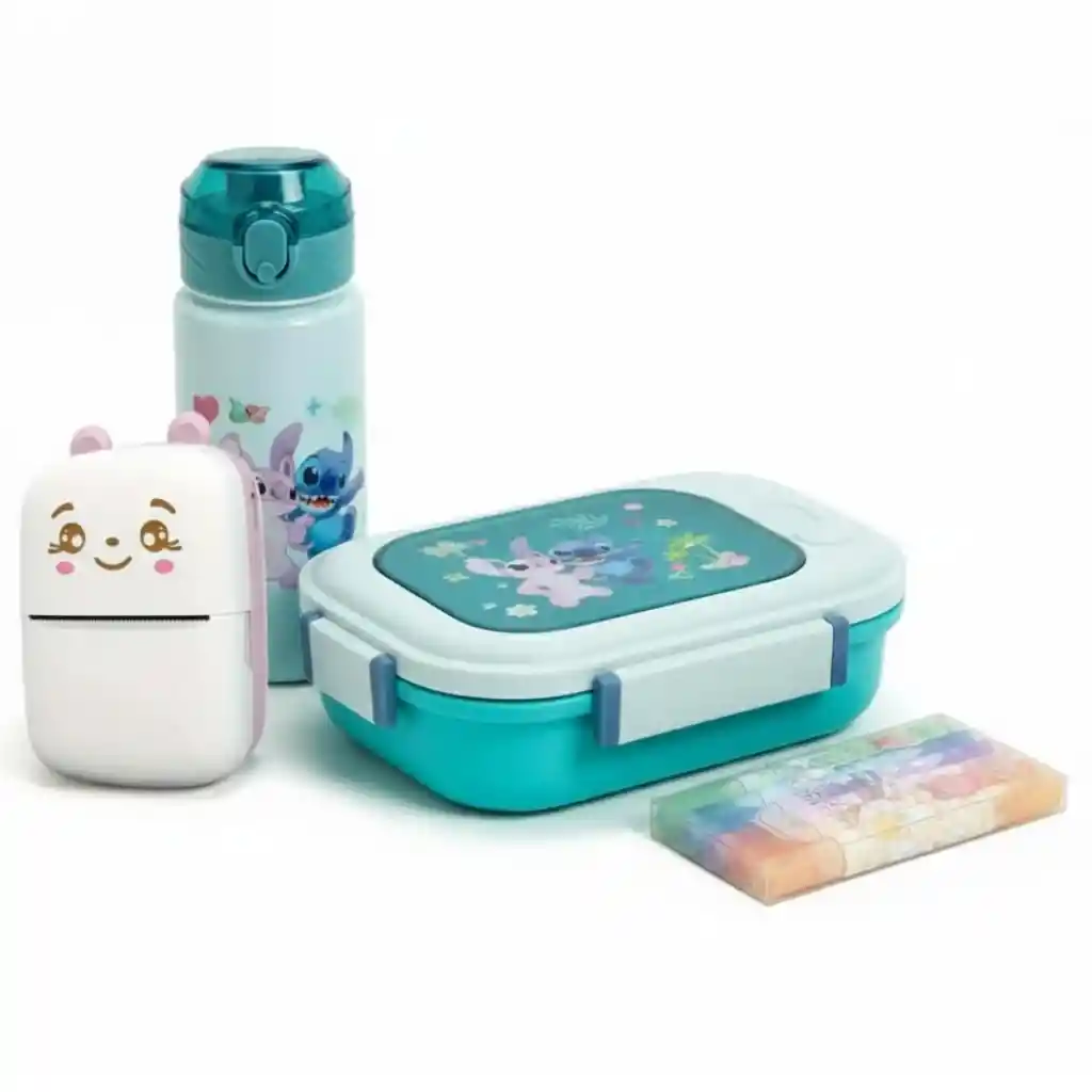 : 🎒 Combo Escolar Stitch – Funcionalidad, Estilo y Organización Este combo escolar está diseñado para acompañar el día a día con practicidad, organización y un diseño encantador. Ideal para estudiantes que buscan llevar todos sus útiles, alimentos y accesorios de forma cómoda, segura y con un estilo divertido inspirado en Stitch. Es perfecto para el colegio, actividades extracurriculares o uso diario. ¿Qué incluye este combo? 🧳 Equipaje y Almacenamiento Morral Principal: Bolso de tamaño estándar con diseño único y llamativo. Cuenta con un compartimento principal amplio para libros y cuadernos, además de un bolsillo frontal grande donde resalta el diseño decorativo. Ideal para una organización práctica durante la jornada escolar. Lonchera de Tela: Lonchera a juego con el morral. Fabricada en tela resistente, con correa ajustable para llevar al hombro y un compartimento principal espacioso para transportar los alimentos. No es térmica. Cartuchera: Estuche alargado con el mismo patrón del set. Perfecta para organizar lápices, colores, marcadores y útiles escolares de uso diario. 🍱 Accesorios de Alimentación – Temática Stitch Termo: Envase en tono crema con diseño colorido de Stitch surfeando. Incluye tapa de seguridad con cierre hermético en color café y detalles en tono turquesa. Ideal para bebidas frías o a temperatura ambiente. Portacomidas (Lonchera Plástica): Recipiente rectangular en color arena/crema con ilustración de Stitch en la tapa. Mantiene la merienda protegida y es perfecto para llevar dentro de la lonchera de tela. ✏️ Útiles de Escritura Set de Resaltadores: Estuche transparente que incluye 6 resaltadores en tonos pastel: amarillo, naranja, rosa, morado, azul y verde. Ideales para organizar y destacar apuntes escolares. Especificaciones Técnicas: Cantidad de piezas: 6 artículos Tipo de combo: Escolar / Uso diario Material del morral: Tela resistente Material de la lonchera: Tela Material del portacomidas: Plástico Tipo de termo: Botella con tapa hermética Cantidad de resaltadores: 6 unidades Uso recomendado: Colegio, estudio, actividades diarias Dimensiones Aproximadas: Morral: Alto: 42 cm Ancho: 30 cm Profundidad: 14 cm Lonchera de tela: Alto: 22 cm Ancho: 20 cm Profundidad: 12 cm Cartuchera: Largo: 20 cm Diámetro: 7 cm Termo: Alto: 22 cm Diámetro: 7 cm Portacomidas: Largo: 18 cm Ancho: 13 cm Alto: 6 cm Garantía Este producto cuenta con 30 días de garantía por defectos de fabricación. Política de Retracto Aplica el derecho de retracto dentro de los 5 días hábiles posteriores a la entrega. El producto debe devolverse sin uso, en perfecto estado y con su empaque original intacto. Notas Importantes • Para aplicar garantía o retracto se deben enviar fotos y/o videos que evidencien claramente el estado del producto. • La garantía no cubre daños ocasionados por golpes, humedad, mal uso o manipulación indebida. • El diseño, colores o presentación de los resaltadores y accesorios pueden variar según disponibilidad de inventario, manteniendo siempre la calidad del producto.