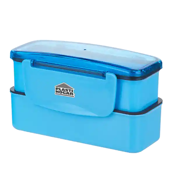Lonchera con 3 compartimientos hermética y cubiertos PLASTIHOGAR. Color: Azul Capacidad: 850 ml Medidas 19×9×10.7 cm Material: PP Tecnología: EasyLock