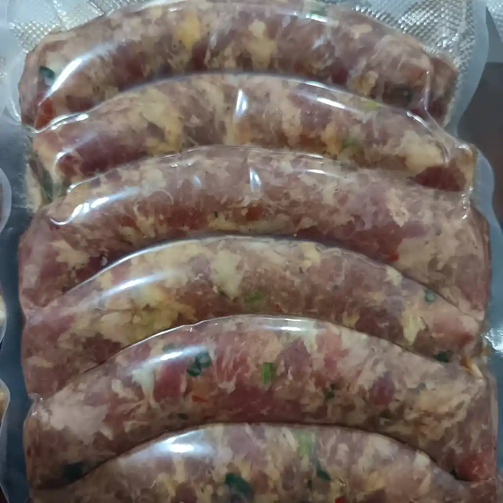 autentica longaiza de roncesvalles 100% de pierna de cerdo preparada con finas hiervas y especias de la alta cocina colombiana para darle ese toque casero que todos queremos ,la mejor opcion para entradas, acompañar tus reuniones familiares,parrilladas,asados o cualquier evento ,sin colorantes ni conservantes artificiales empacada al vacio parauna mayor duracion de la calidad del producto,paquete por 6 unidades 750 gramos