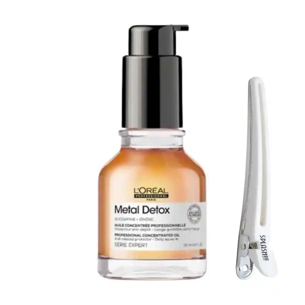 Aceite concentrado protector anti-deposito 50 ml - Metal Detox El cabello esta más fuerte y 2x más brillante. Para todos los tipos de cabello, con coloración, dañado, decolorado y natural. En tu próxima visita del salón pregunta por el protocolo Metal Detox con concentrado de Glicoamina para detener el quiebre y el cambio de color. Metal detox Anti-deposit protector concentrated oil El aceite concentrado anti-deposito de Metal Detox protege la fibra de los depositos de particulas metalicas para cuidar tu cabello luego de cualquier coloración, balayage o servicios de iluminacion. El metal dentro de la fibra capilar crea riesgos de quiebre e impacta de manera negativa los resultados de tu coloración. DETALLES: Con Metal Detox tu cabello esta instantaneamente más suave y más nutrido. COMO USAR, RESULTADOS Y BENEFICIOS − INSTRUCCIONES DE USO: Aplica en pelo seco o secado con toalla. Frota 1 o 2 dosis entre las plamas de tus manos y distribuye de manera uniforme de medios a puntas- No enjuagar. Procede a secar o dejar secar natural. RESULTDOS Y BENEFICIOS: Neutralización del Metal Protege la fibra de los depósitos de particulas metalicas. Cabello instantáneamente más suave y nutrido. Cabello más fuerte. Preserva el color y da 2x más brillo 97% menos riesgos de quiebre*. 3x más control del frizz* y protege hasta 230°C*: