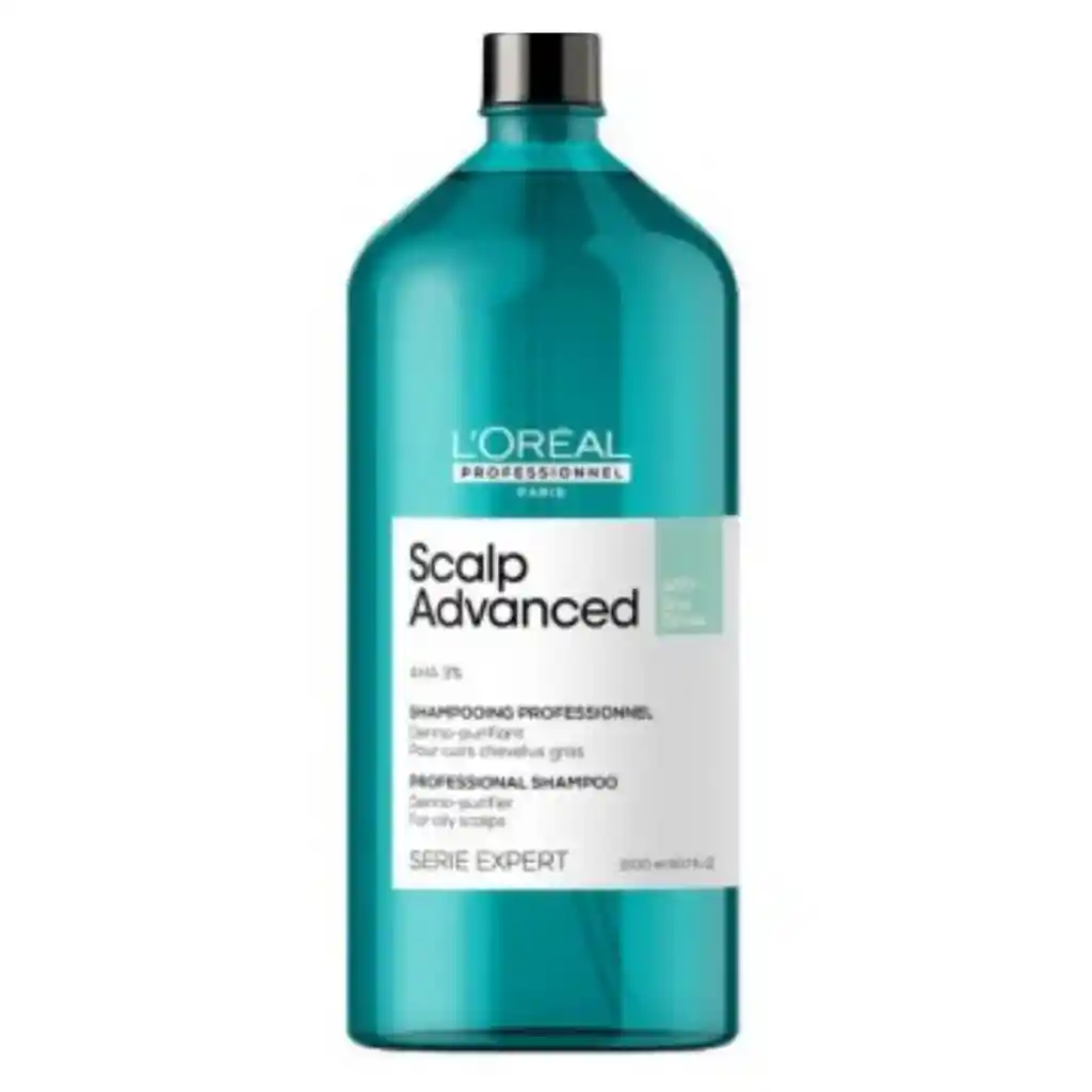 Shampoo Scalp Advanced Cabello Anti-Gras Oiliness 1500ml Loreal Professionnel Es un producto de cuidado capilar formulado para tratar el exceso de grasa en el cuero cabelludo, también conocido como cabello graso. Este shampoo está diseñado para controlar la producción excesiva de grasa en el cuero cabelludo y mantenerlo fresco y limpio por más tiempo. Beneficios: Control de la grasa. Limpieza profunda. Textura liviana. Sensación de frescura. Fórmula suave. Modo de uso: Asegúrate de mojar completamente tu cabello antes de aplicar el shampoo. Vierte una cantidad adecuada de shampoo en la palma de tu mano. La cantidad dependerá de la longitud y densidad de tu cabello. Distribuye el shampoo entre tus manos y luego aplícalo directamente en el cuero cabelludo. Masajea suavemente con las yemas de los dedos en movimientos circulares. medida que masajeas el cuero cabelludo, el shampoo se distribuirá por el resto de tu cabello. Asegúrate de lavar todo tu cabello, desde la raíz hasta las puntas. Después de masajear y lavar tu cabello, enjuágalo completamente con agua tibia. Asegúrate de eliminar todo el shampoo y espuma.