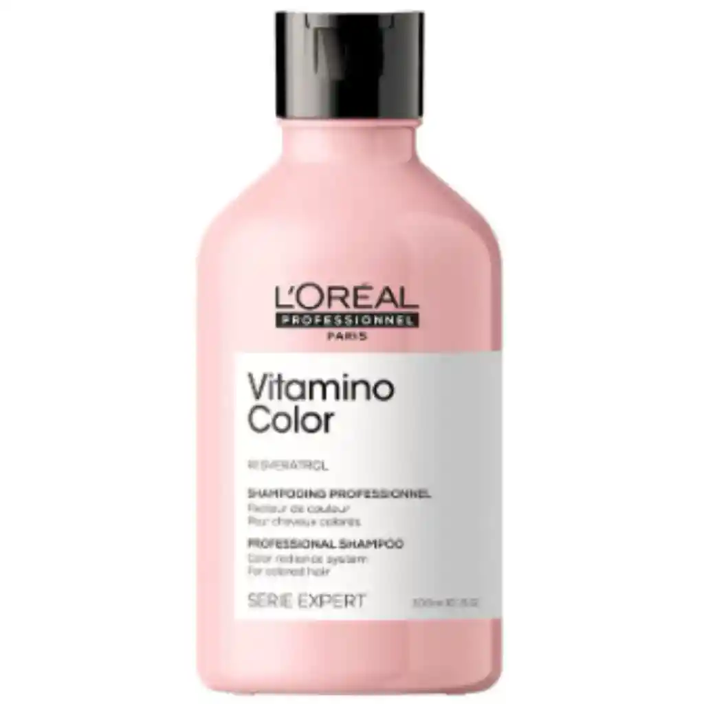 Loreal Vitamino Color Shampoo PARA UN COLOR RADIANTESHAMPOO Este shampoo profesional limpia suavemente el cabello con color y hace que el color dure hasta 8 semanas*. El cabello con color es 6* veces más brillante y luce más radiante. El cabello se siente más ligero, manejable y suave. Fórmula enriquecida con resveratrol, un poderoso antioxidante para un cabello con color perfecto de salón. *shampoo + acondicionador Modo de empleo: aplicar uniformemente sobre el cabello mojado y masajee hasta hacer espuma. Enjuague bien. Repita el proceso si es necesario. En caso de contacto con los ojos, enjuáguelos inmediatamente. Cabello teñido Cabello teñido Protección del color contra la decoloración, 6 veces más brilloso 8 semanas de protección del color