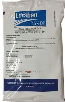 Insecticida de Uso agricola PRESENTACIÓN: 1 KG CATEGORÍA: III REGISTRO ICA 932 COMPOSICIÓN GARANTIZADA: Ingrediente activo: Clorpirifos 480 g/L 0,0-diethyl 0-3,5,6-trichloro-2-pyrydyl phosphorothioate, de formulación a 20 °C. Ingredientes aditivos: c.s.p. 1 Litro INSTRUCCIONES DE USO Y MANEJO CONSULTE CON UN INGENIERO AGRÓNOMO. Lorsban™ 4 EC es un insecticida organofosforado de amplio espectro y recomendado para el control de plagas en diversos cultivos. INSTRUCCIONES DE USO: Aplique Lorsban™ 4 EC en mezcla con un volumen suficiente de agua para cubrir uniformemente el follaje de las plantas. Use equipo aéreo o terrestre. Para preparar la mezcla llene con agua el tanque hasta la mitad, agregue el insecticida agitando continuamente, agregue el agua resultante del triple lavado del envase desocupado y después añada el resto del agua, manteniendo la agitación. Cultivo Plaga Dosis y época de aplicación P.C. P.R. Algodón Gusano tigre, Gusano soldado (Spodoptera spp.) 2.0 L/Ha 20 días 24 horas Maíz Gusano cogollero (Spodoptera frugiperda) 1.0 L/Ha Aplíquese con un 30% a 40% de daño fresco. Diríjase el producto al cogollo de la planta. En plantas con más de 70 cm. de altura úsese una dosis de 1.5 L/Ha. 20 días 24 horas Sorgo Gusano cogollero (Spodoptera frugiperda) 1.0 L/Ha Aplíquese con un 40% a 60% de daño fresco. Diríjase el producto al cogollo de la planta. 21 días 24 horas Sorgo Mosca del ovario (Contarinia sorghicola) Aplicar de 0.25 a 0.5 L/Ha cuando observe en promedio un adulto de la mosca por panoja al evaluar 10 sitios/Ha y en cada sitio 10 plantas al azar, al momento de floración del cultivo de sorgo. Aplicar preferiblemente en horas de la mañana que es cuando la hembra adulta presenta su mayor actividad de oviposición. 21 días 24 horas Café Minador (Leucoptera coffeella) 1.0 L/Ha Aplicar cuando se presenten más de 30 larvas/100 hojas minadas. Efecto eficaz del producto hasta 14 días después de aplicado. (Dosis equivalente a 50 cm3/20 litros de agua). 21 días 24 horas Café Broca del café (Hypothenemus hampei) 1.0-2.0 L/Ha Realice el control químico después de adelantar el control cultural y asesórese de los técnicos del Comité de Cafeteros, ICA o asistentes técnicos particulares para determinar la época y el momento más adecuado para realizar las aplicaciones. 1.0 L/Ha con un nivel de infestación del 5% para una densidad de 3.000 a 4.000 árboles/Ha. 1.5 L/Ha, con un nivel de infestación del 6-10% y para una densidad de 4.000 a 6.000 árboles/Ha. 2.0 L/Ha con un nivel de infestación superior al 10% y para una densidad mayor a 6.000 árboles/Ha. Estas dosis corresponden en promedio a 5 cm3 de Lorsban™ 4 EC por litro de agua. Aplicar Lorsban™ 4 EC cuando se observen brocas iniciando el ataque de cerezas verdes, para evitar la penetración de la broca al grano y su diseminación. Lorsban™ 4 EC debe aplicarse dentro de un programa de manejo integrado de la broca que incluya control cultural y biológico. Se deben recoger los frutos que caen al suelo, y los frutos maduros, sobremaduros y secos en sus cafetos. Se recomienda repasar y repelar cada 15 días, porque la broca se alimenta, vive y se reproduce en los granos no cosechados a tiempo. Como control biológico: Liberación de insectos parásitos y aspersión con entomapatógenos como Beauveria bassiana. Por último control legal. El Lorsban™ 4 EC debe ser utilizado bajo el asesoramiento de técnicos del Comité de Cafeteros, umata o asistentes técnicos particulares, cuando la infestación sea mayor del 2% y el porcentaje de brocas vivas en posiciones de penetración A+B sea mayor al 50% (entre 90-150 días después de floración) localizado en los focos o en forma generalizada de acuerdo con la dispersión de la broca en el cafetal. El Lorsban™ 4 EC debe aplicarse como un componente dentro de un MANEJO INTEGRADO DE LA BROCA, que conlleve CONTROL CULTURAL (recolección oportuna y permanente de frutos brocados, cosecha oportuna, retiro de granos secos y caídos, beneficio inmediato). CONTROL BIOLÓGICO (aspersión de entomopatógenos como Beauveria bassiana o liberación de parasitoides como Cephalonomia stephanoderis) y la aplicación de medidas de CONTROL LEGAL. Aplique Lorsban™ 4 EC en dosis de 0.3 cm3/árbol es decir 1.5 litros/5000 árboles.