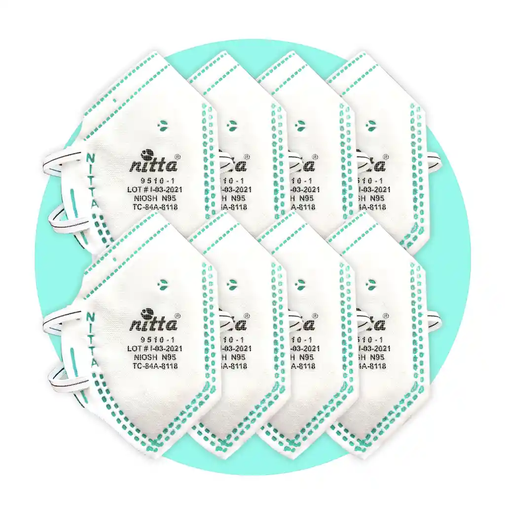 Nitta Blanco color interno azul y verde Lote x 100 unidades empaque individual.Mascarilla Nitta N95Referencia 9510-1Color blanco externo. Interno colores variablesCertificado NIOSH N95. esta referencia indica que es un tapabocas con el mas alto filtro, lo que no permite el paso del virus SARSCOV-2 COVID-19 , respirador N95, uso medico. A diferencia de los tapabocas de tela, quirúrgicos o con válvulas de exhalación este es la única referencia de tapabocas que protege ambas vías, evita contagiar y ser contagiado.Envíos a todo Colombia, unidad y al por mayor.ESPECIFICACIONES Y CARACTERÍSTICAS:Respirador libre de mantenimiento presenta un diseño ultra liviano y ergonómico con exhalación N95, Protege al usuario contra polvos y aerosoles libres de partículas oleosas a los que se encuentra expuesto. Certificada NIOSHRecomendado para protección de riesgo biológico-Certificada como Mascarilla N95 por NIOSH (N° de Aprobación TC-84A-6247.-Color Blanco-Especial para trabajo en altas concentraciones de partículas (2x106 partículas/ft3)-Recomendado para trabajo en ambientes húmedos y calientes-Brinda protección y mayor frescura-Retiene más del 95% de las partículas de tamaño 0,075 micras-Plegable-Empaque Individual*** Aprobado para material particulado Norma 42 CFR 84 NIOSH (N95) y la Norma NTC 2561 (Tipo B) ***° El color interno del respirador pueden variar.