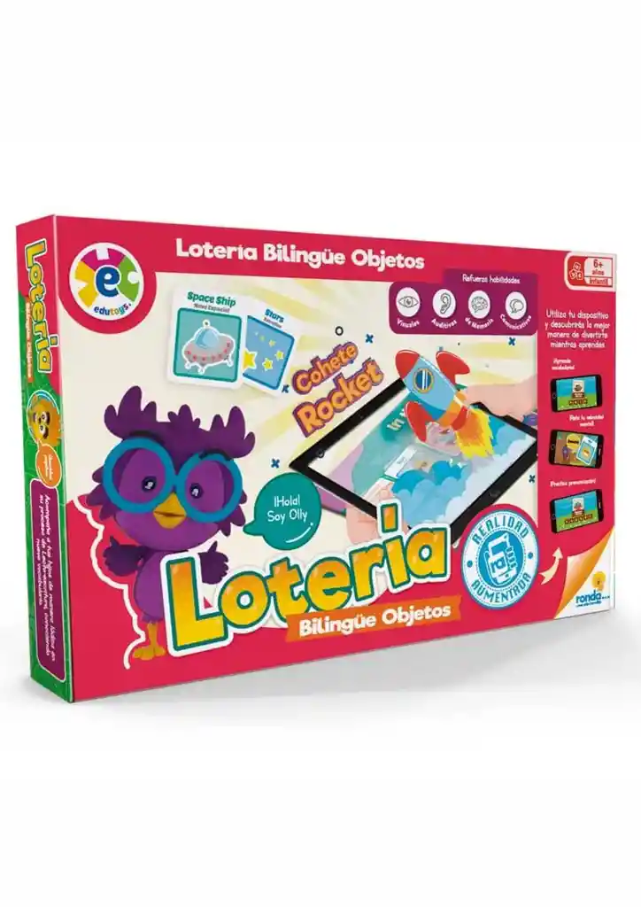La Loteria Bilingue Objetos es Juego que facilita el repertorio verbal de los niños mediante el reconocimiento de objetos. ¡Divertidos experimentos sensoriales con e l juego! Estimula los sentidos de tus hijos mediante diferentes actividades de la Vida práctica. Refuerza habilidades: Sensoriales + De independencia + De hábitos. Descarga la App Edutoys Ronda para que el aprendizaje no termine. Acompaña a tu hijo de manera lúdica y estimula su proceso sensorial. Experimenta y comparte en familia, a través de diferentes actividades sensoriales y de la vida práctica, explorando diferentes juegos que le ayudarán a tu hijo a fomentar su autonomía e independencia. Aprende ingeniosas ideas para estimular los sentidos de tus hijos y diviértete poniéndolos a prueba. *Habilidades *Destrezas *Experimentos *Sentidos *Aprendizaje *Juego *Didácticos *Lúdico *App Contenido del producto : *6 Tableros *48 Tarjetas Edad mínima recomendad: 6 + Tipo de juego: Educativo Cantidad de jugadores: 2 +