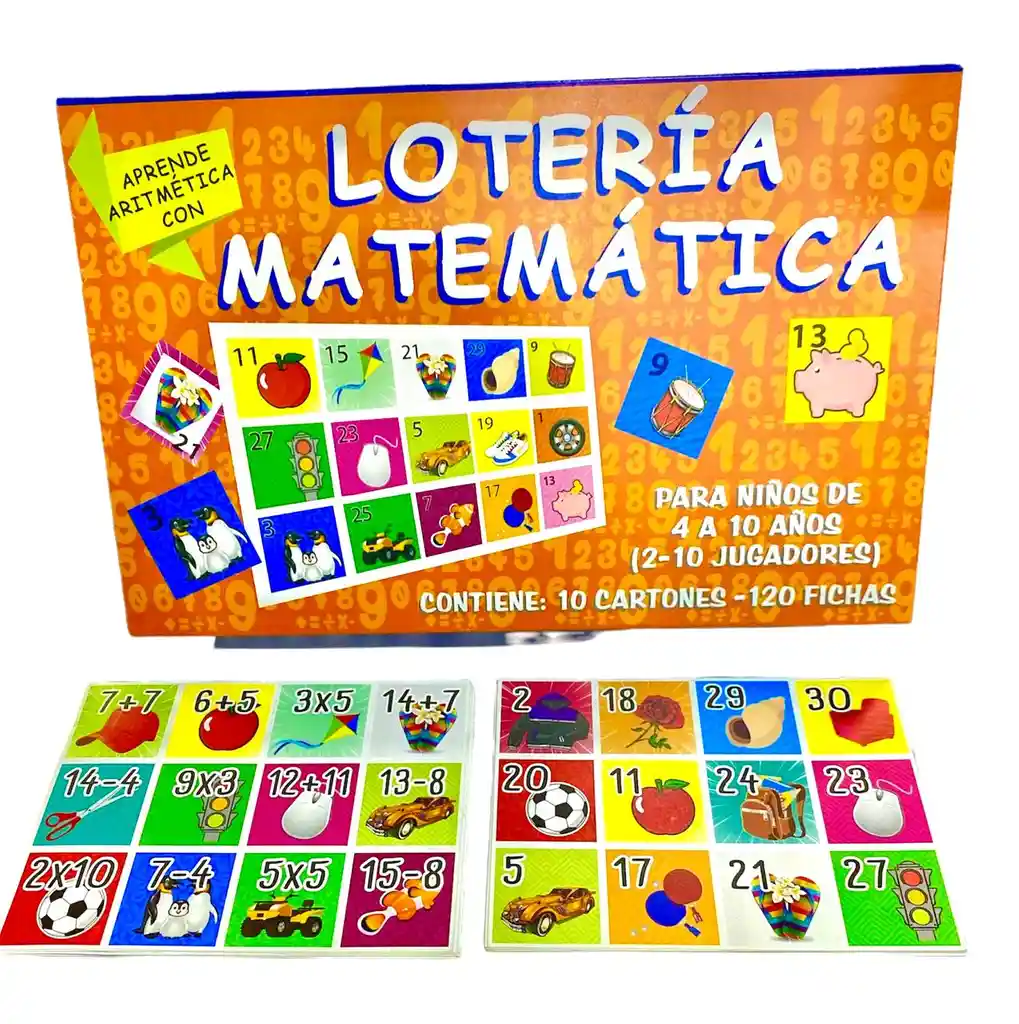Increible Loteria didactica 10 cartones - 120 fichas de carton, Es la mejor estrategia para reforzar la matematica a nuestros pequeños. Ideal para niños de 4 a 10 años (2-10 Jugadores)