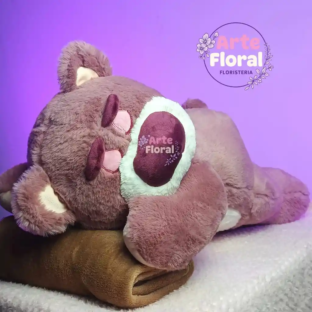 Peluche Lotso acostado con cobija – 55 cm 🍓 Suave y tierno, hecho con tela tipo alergénica premium. Incluye cobija rosada de 1 m x 1,20 m 🩷 Perfecto para regalar, decorar o abrazar. perfumado y empacado