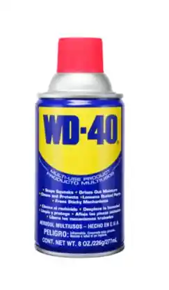 El WD-40® AEROSOL es una mezcla de concentrados químicos exclusivos suspendidos en un destilado de petróleo de alta graduación. No contiene siliconas ni lanolinas y puede utilizarse con confianza en todos los metales y plásticos. Posee 5 grandes beneficios: Lubrica, Desplaza la Humedad, Protege, Penetra, Limpia. Es el número # 1 en el mundo y tiene más de 2000 usos en aplicaciones en autos, motos, Aeronauticas, Embarcaciones, Fabricas.