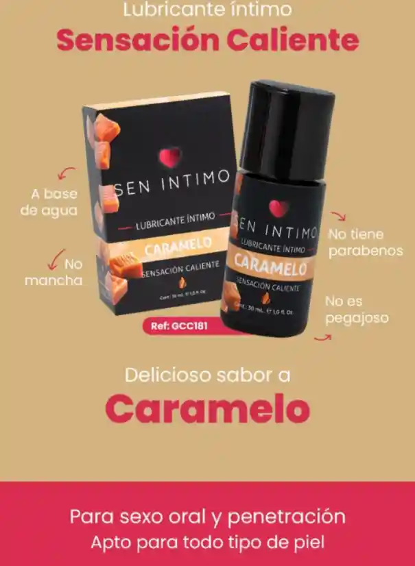 Descubre un nuevo nivel de placer con nuestro Lubricante Caliente Caramelo Sen Intimo. Diseñado para elevar tus momentos íntimos, este lubricante te sumerge en una sensación de calor emocionante y un delicioso sabor a caramelo. Aplica este lubricante para intensificar la conexión y disfrutar de una experiencia única. Garantiza un uso prolongado, permitiéndote explorar el placer a tu propio ritmo. Perfecto para agregar un toque de diversión y dulzura a tus encuentros íntimos. Experimenta un calor emocionante y delicioso sabor. Usa en la zona íntima o en el preservativo, estimula, frota o sopla para sentir el calor. Apto para sexo oral y penetración. ¡Juega con tus sentidos! Características: A base de agua Seguro con preservativos y juguetes Libre de parabenos No tiene azúcar Fácil de limpiar No mancha y no es pegajoso Textura ultra suave, agradable al tacto Apto para todo tipo de pieles No testado en animales Si en algún momento experimenta irritación, suspenda su uso y consulte a su médico.
