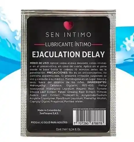 ¿Quieres que la pasión dure más? El Lubricante Íntimo SEN INTIMO Ejaculation Delay es tu aliado perfecto para extender la duración de tus encuentros y maximizar el disfrute mutuo. Este lubricante de efecto retardante ayuda a disminuir la sensibilidad de forma suave y controlada, permitiéndote mantener el ritmo por más tiempo y sincronizar el clímax con tu pareja. Es un sachet de uso único (7 mL / 0.24 fl. Oz.), ideal para probar o llevar contigo con total discreción. 💪 Beneficios Clave para ÉL y ELLA: Control Máximo: Ayuda a retrasar la eyaculación, prolongando la intimidad. Fórmula Suave: Disminuye la sensibilidad sin anular las sensaciones placenteras. Formato Práctico: Sachet individual (7 mL) perfecto para un solo uso y total discreción. Fácil de Usar: Solo aplícalo 10 minutos antes de la penetración. 💡 Modo de Uso (Rápido y Efectivo): Aplica el contenido del sachet sobre el pene, desde la base hasta la cabeza, 10 minutos antes de la penetración. ¡Y prepárate para una maratón de placer! 🚀 ¡Lleva tu Resistencia al Siguiente Nivel! Añade este sachet de SEN INTIMO Ejaculation Delay a tu carrito de Rappi y regálale a tu pareja una noche inolvidable. ¡Pídelo ahora mismo! 🤫