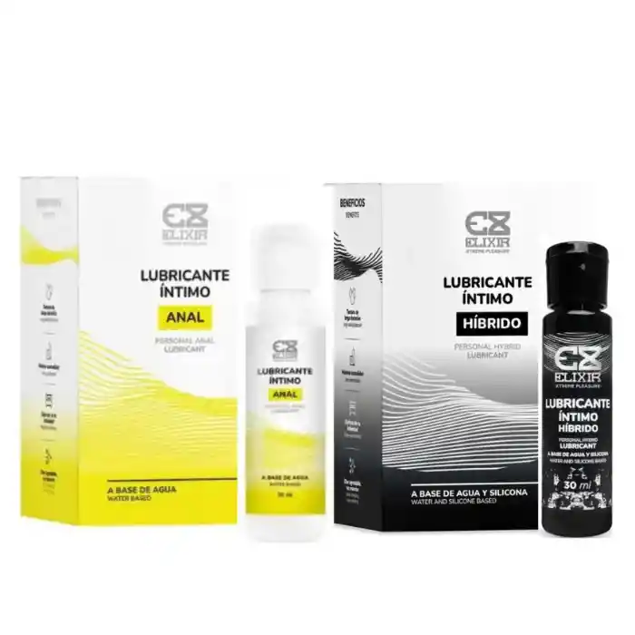 Lubricante Íntimo Anal Elixir, la clave para una experiencia anal inigualable El lubricante puede ser usado como complemento de la lubricación natural insuficiente, permitiendo un acto sexual más placentero. Ideal para las relaciones en pareja que sienten algunas fricciones en las zonas íntimas del cuerpo. Este lubricante ayuda a tener relaciones sexuales más placenteras, además es soluble en agua y tiene un delicioso olor. Contiene extractos naturales por lo que no hay anestesia ni causa pérdida de la sensibilidad. Uso externo, si presenta una reacción desfavorable, se suspende su uso y consulta con su médico si lo requiere. No es un anticonceptivo, no contiene espermicidas. Mantener en un lugar fresco y seco, fuera del alcance de los niños. Distribuya una generosa cantidad 15 minutos antes de Tipo de base Agua Modo de uso Aplicar una pequeña cantidad de Lubricante íntimo Anal Elixir en la zona íntima para mejorar la lubricación o para aliviar la resequedad durante la relación íntima. Puede ser utilizado con otros dispositivos médicos como preservativos. Reaplicar tantas veces como se desee. El Lubricante Íntimo Híbrido Elixir es un producto elaborado a base de agua y silicona cuyo fin es proporcionar una lubricación de larga duración en la zona íntima para el uso prolongado en relaciones sexuales o shows de larga duración. Su fórmula híbrida garantiza resultados excepcionales en todo tipo de pieles. Una combinación de lenta absorción que refuerza la lubricación natural proporcionando una sensación de deslizamiento muy agradable para la comodidad y disfrute en la intimidad por mucho más tiempo. El Lubricante Íntimo Híbrido Elixir es de tacto ligero, suave y sedoso además, es compatible con cualquier tipo de material de juguetes sexuales y con preservativos. ¡EL LUBRICANTE ÍNTIMO HÍBRIDO ELIXIR SÍ CUIDA LOS JUGUETES DE SILICONA! CARACTERISTICAS: -Presentaciones -A base de agua y silicona -Textura de larga duración, sedosa y ligera -Ideal para sexo anal o vaginal -Sin olor, ni sabor -No mancha la ropa y es de fácil limpieza -Uso seguro con juguetes y preservativos -Máxima comodidad MODO DE USO: Aplicar una pequeña cantidad de Lubricante Íntimo Híbrido Elixir en la zona íntima para mejorar la lubricación o para aliviar la resequedad durante la relación íntima. Puede ser utilizado con otros dispositivos médicos como preservativos. Aplicar tantas veces como se desee. PRECAUCIONES: No es un anticonceptivo, no contiene espermicidas. En caso de presentar reacciones alérgicas o irritación, suspender el uso y consultar a un especialista. Mantener alejado de los ojos y oídos. Mantener fuera del alcance de los niños y animales. No usar en caso de observar el empaque alterado o deteriorado. Consérvese en un ambiente fresco y seco (15° a 30° C).