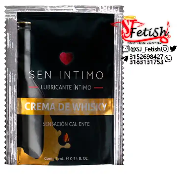 LUBRICANTE CALIENTE - CREMA DE WHISKY - MARCA SEN ÍNTIMO - SACHET 7 ML LUBRICANTE CALIENTE - CARAMELO - CREMA DE WHISKY - SACHET 7 ML Los mejores lubricantes del mercado, ricos en sabor y olor. A base de agua, seguros con preservativos, no manchan, ni dejan residuos en la piel, agradable sensación caliente. Sabor Crema de Whisky. USO: Aplicar sobre el área deseada. PRECAUCIONES: No es un anticonceptivo. No contiene espermicidas. Si presenta irritación suspenda su uso y consulte a su médico. Manténgase en un lugar fresco y seco, fuera del alcance de los niños. Producto sólo para adultos. CONTENIDO: 7 ml. disponible en sj fetish boutique erotica, boutique erotica armenia, sex shop, sex shop armenia, sexshop armenia, sexshop, tienda erotica, tienda erotica armenia, tienda para adultos, tienda para adultos armenia,tienda para adultos en armenia