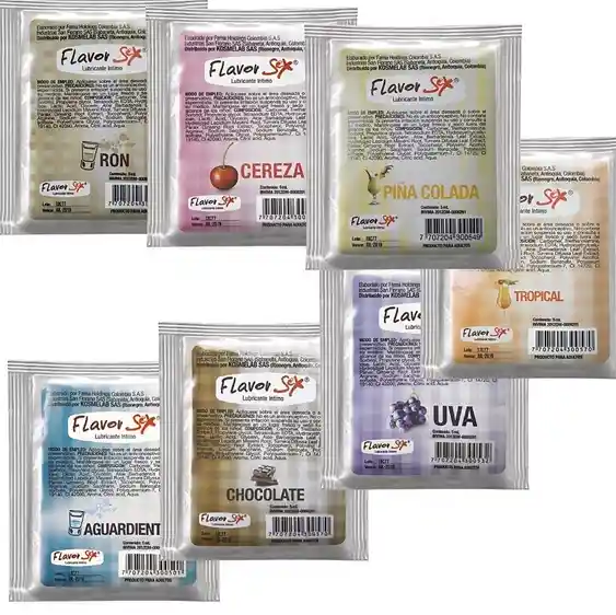 Lubricante íntimo caliente 5gr Flavor Sex. Hecho a base de agua, exclusivo para las relaciones vaginales ya que facilita la penetración, brindan agradables sensaciones. Son comestibles ideales para sexo oral. Disponibles en varias presentaciones: Prueba esta nueva sensación, ideal también para masajes en zonas genitales, lo sentirás con sólo el roce, llevándote a un placer extremo. No deterioran el látex del condón. – Envase en sachet x 5 Gr. – Sabores: Tropical | Chocolate | Cereza | Piña colada | Coco | Kiwi | Uva – Textura: Aceite viscoso – Es comestible, no tóxico, con agradable sensación de calor. – Presentación de variados sabores, fáciles de cargar. – Apropiado para el sexo oral y todo el cuerpo. Modo de uso: Aplicar una cantidad suficiente en la parte del cuerpo a lubricar y espárcela suavemente