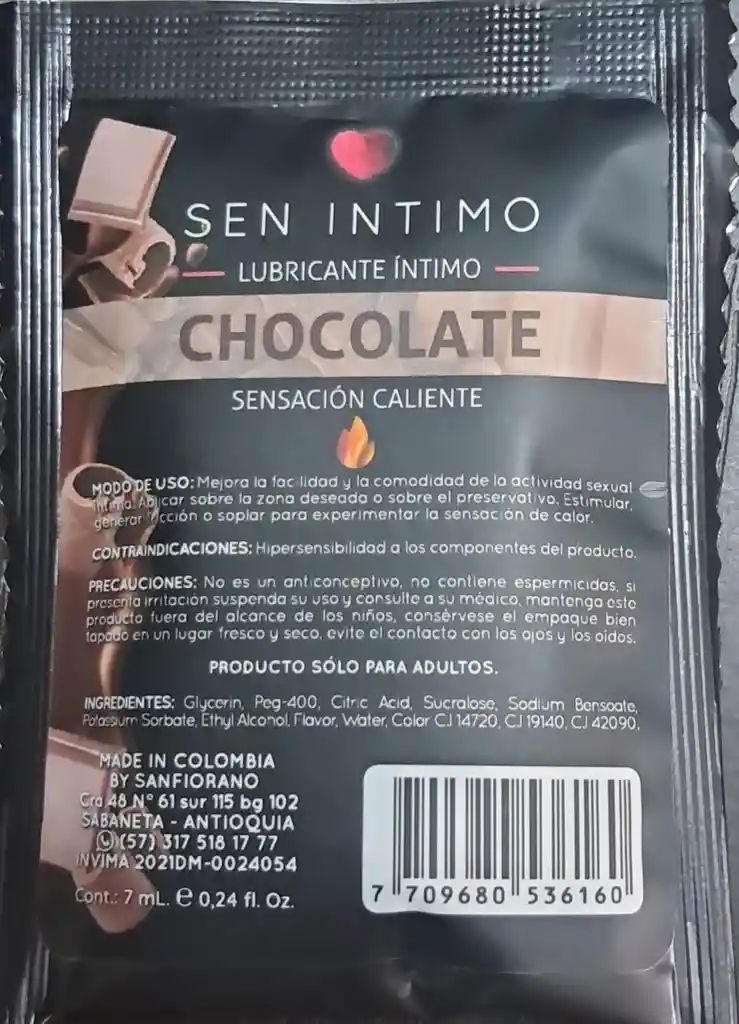 Lubricante intimo sabor a chocolate sensación caliente SEN INTIMO