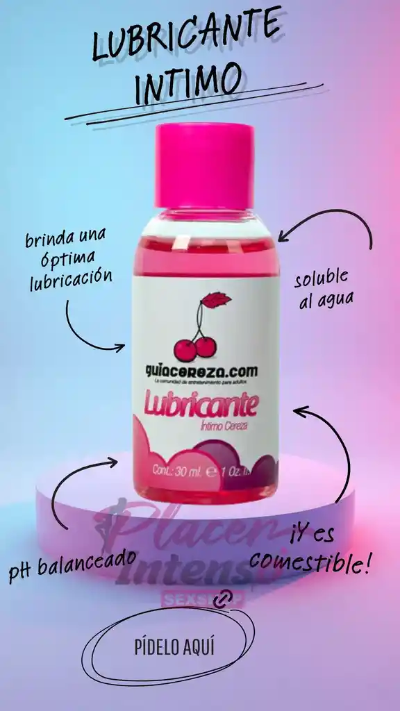 Lubricante íntimo que incrementa tu placer y te brinda una óptima lubricación, su pH balanceado evita la irritación y la resequedad viene en ricos sabores a cereza y chocolate o natural. El lubricante Cereza es seguro con preservativos, soluble al agua, de fácil aplicación, no grasoso, no mancha ni deja residuos en tu cuerpo. ¡Y es comestible! Modo de uso: Aplíquese sobre el área deseada o sobre el preservativo.