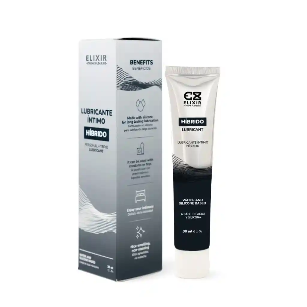 El Lubricante Íntimo Híbrido Elixir es un producto elaborado a base de agua y silicona cuyo fin es proporcionar una lubricación de larga duración en la zona íntima para el uso prolongado en relaciones sexuales o shows de larga duración. Su fórmula híbrida garantiza resultados excepcionales en todo tipo de pieles. Una combinación de lenta absorción que refuerza la lubricación natural proporcionando una sensación de deslizamiento muy agradable para la comodidad y disfrute en la intimidad por mucho más tiempo. El Lubricante Íntimo Híbrido Elixir es de tacto ligero, suave y sedoso; además, es compatible con cualquier tipo de material de juguetes sexuales y con preservativos.