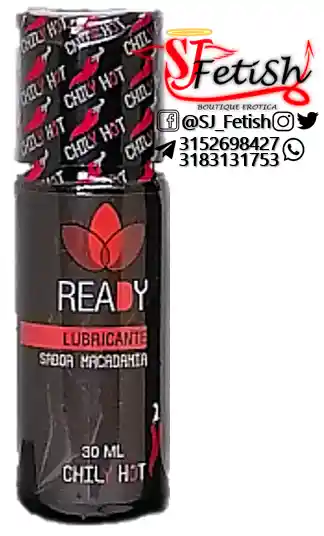 Lubricante Neutro ready macadamia de 30ml a base de agua, chily hot disponible en sj fetish boutique erotica, sex shop armenia