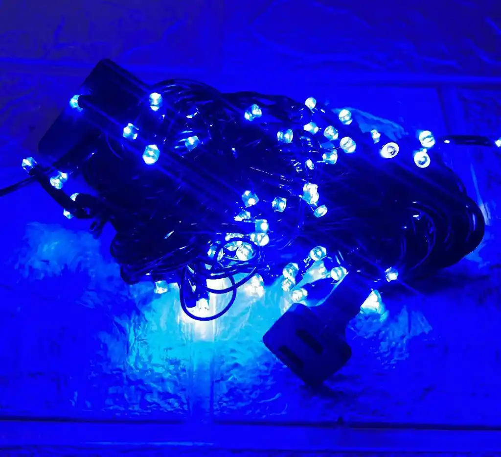 LUCES DE NAVIDAD LINEAL X100 LED AZUL CON CONTINUACION / HEMBRA CABLE VERDE COD.2837