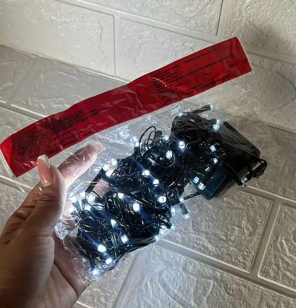 LUCES DE NAVIDAD LINEAL X100 LED BLANCO SIN CONTINUACION CABLE VERDE COD.2578