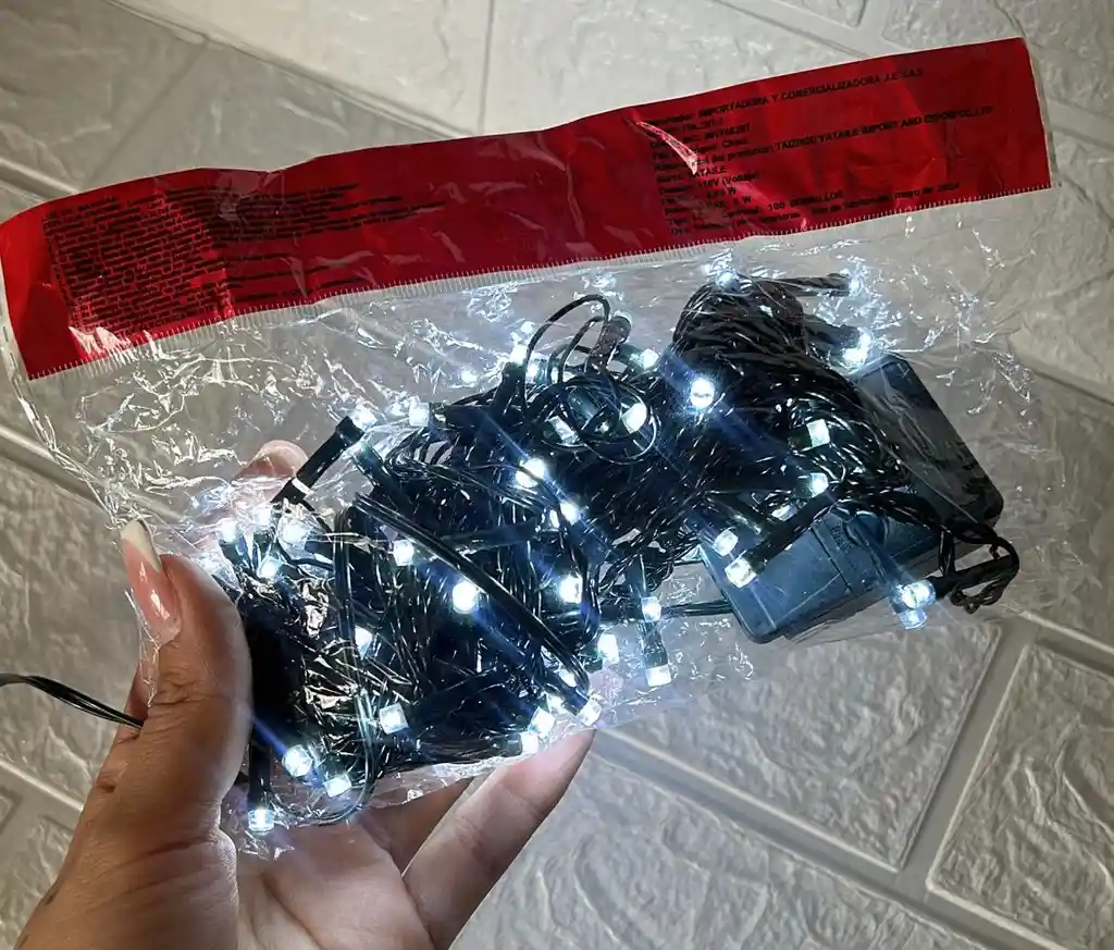 LUCES DE NAVIDAD LINEAL X100 LED BLANCO SIN CONTINUACION CABLE VERDE COD.2578