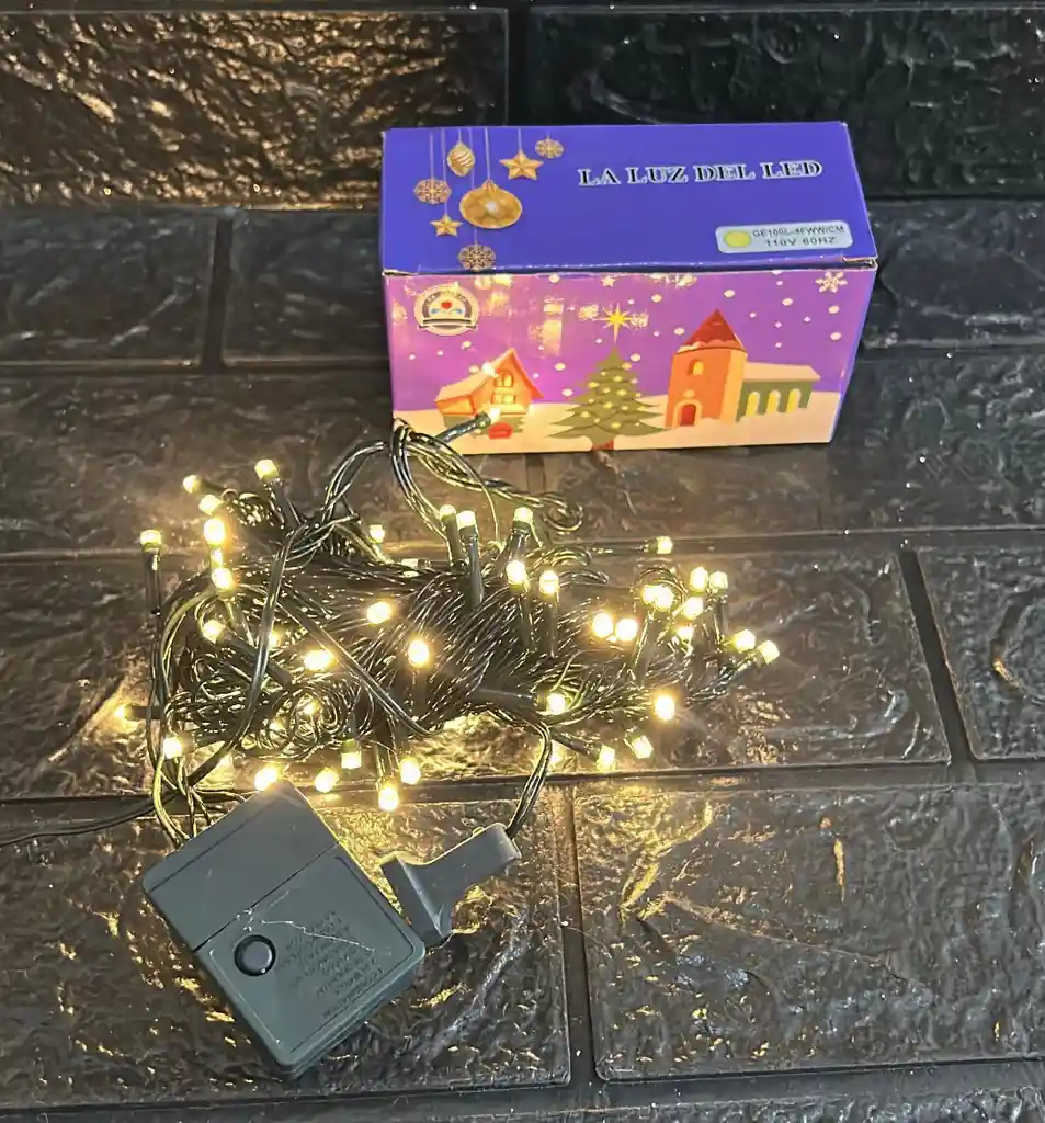 LUCES DE NAVIDAD LINEAL X100 LED CALIDA CON CONTINUACION CABLE VERDE COD.4223