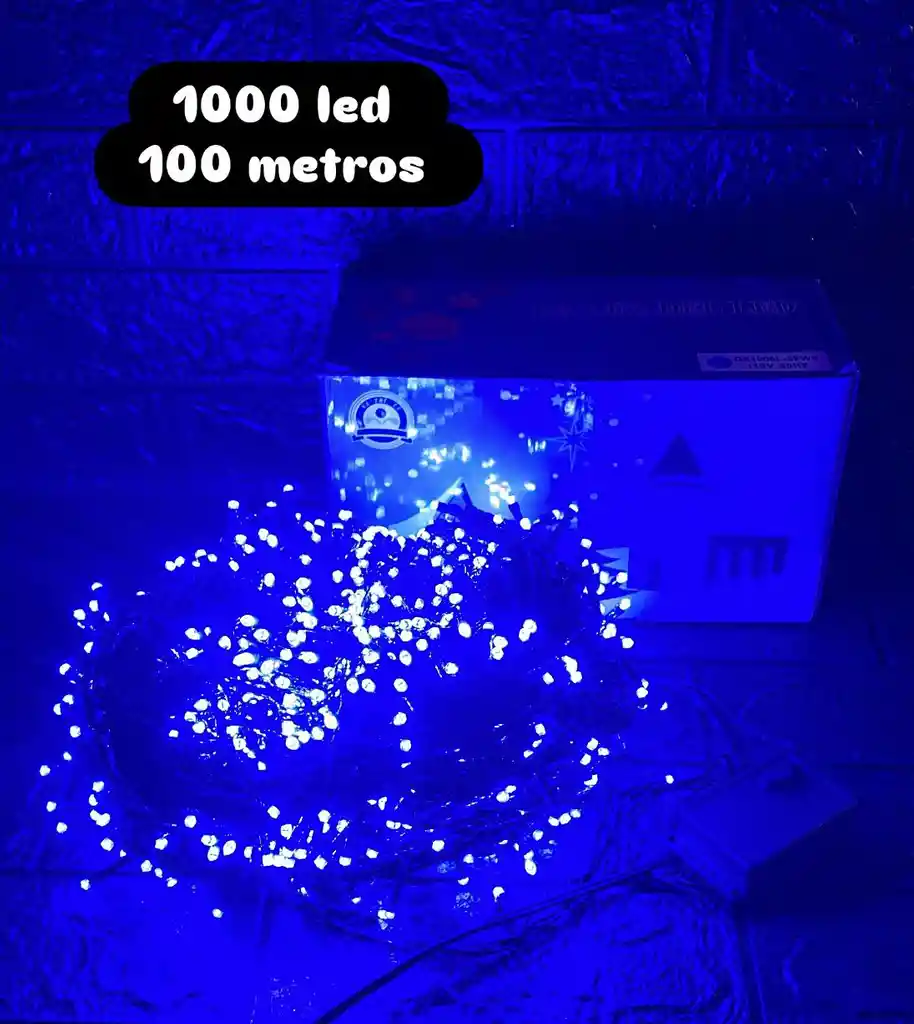 LUCES DE NAVIDAD LINEAL X1000 LED AZUL SIN CONTINUACION CABLE VERDE COD.4235