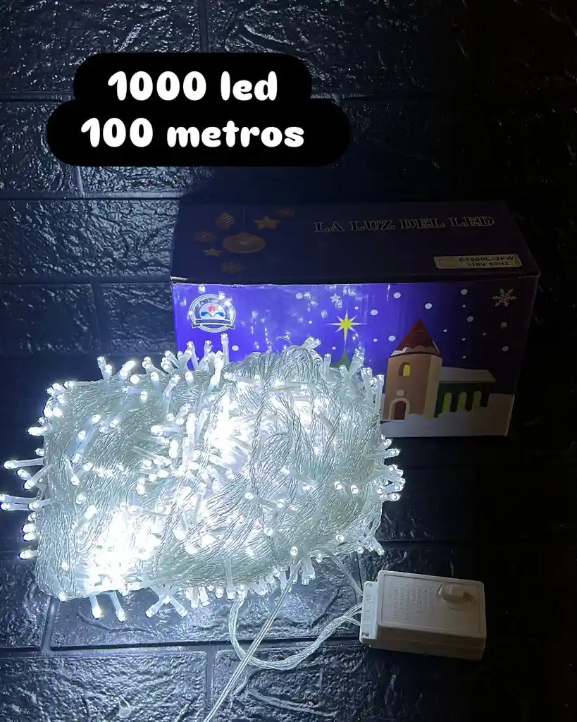 LUCES DE NAVIDAD LINEAL X1000 LED BLANCO SIN CONTINUACION CABLE TRANSPARENTE COD.4239